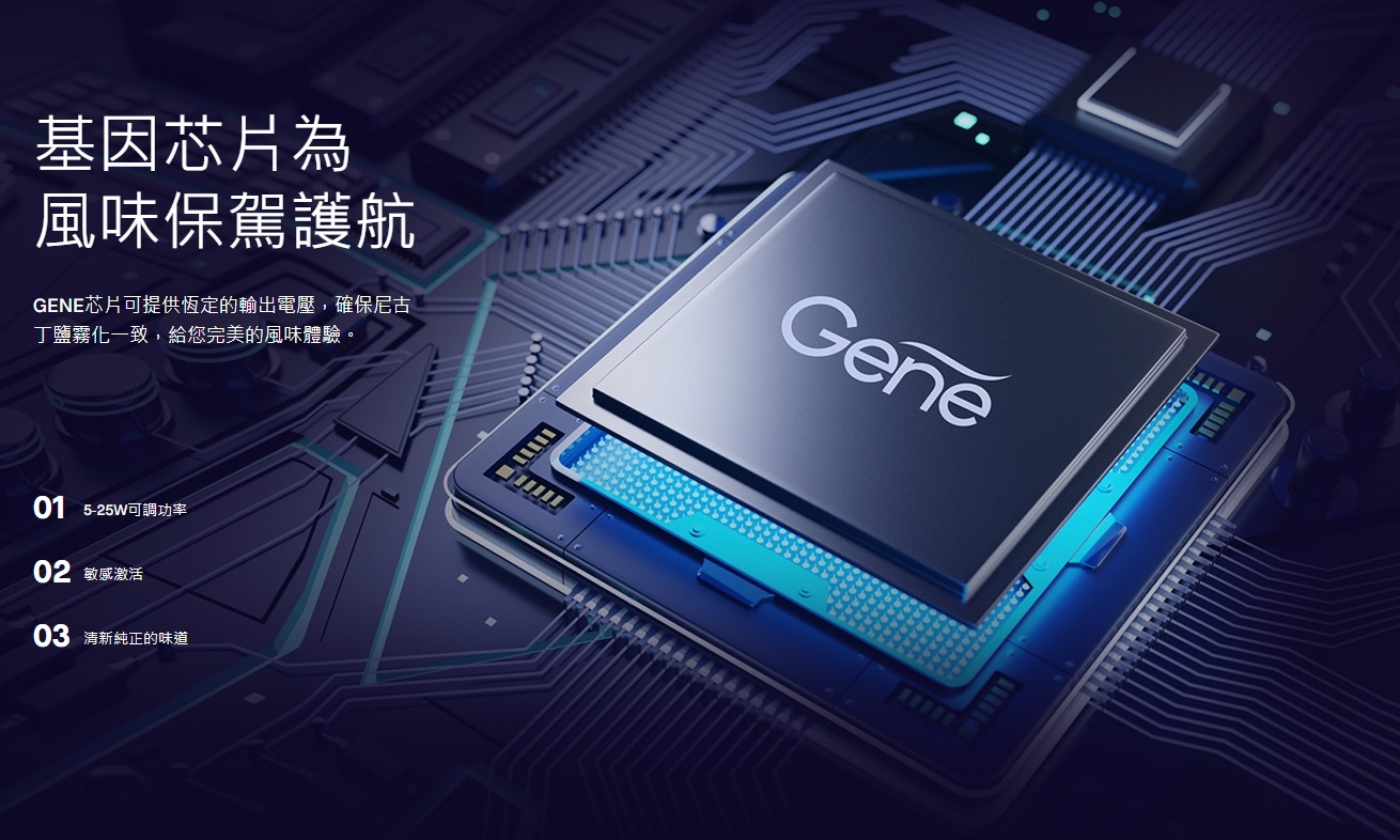 風味保駕護航GENE芯片可提供恆定的輸出電壓,確保尼古丁鹽霧化一致